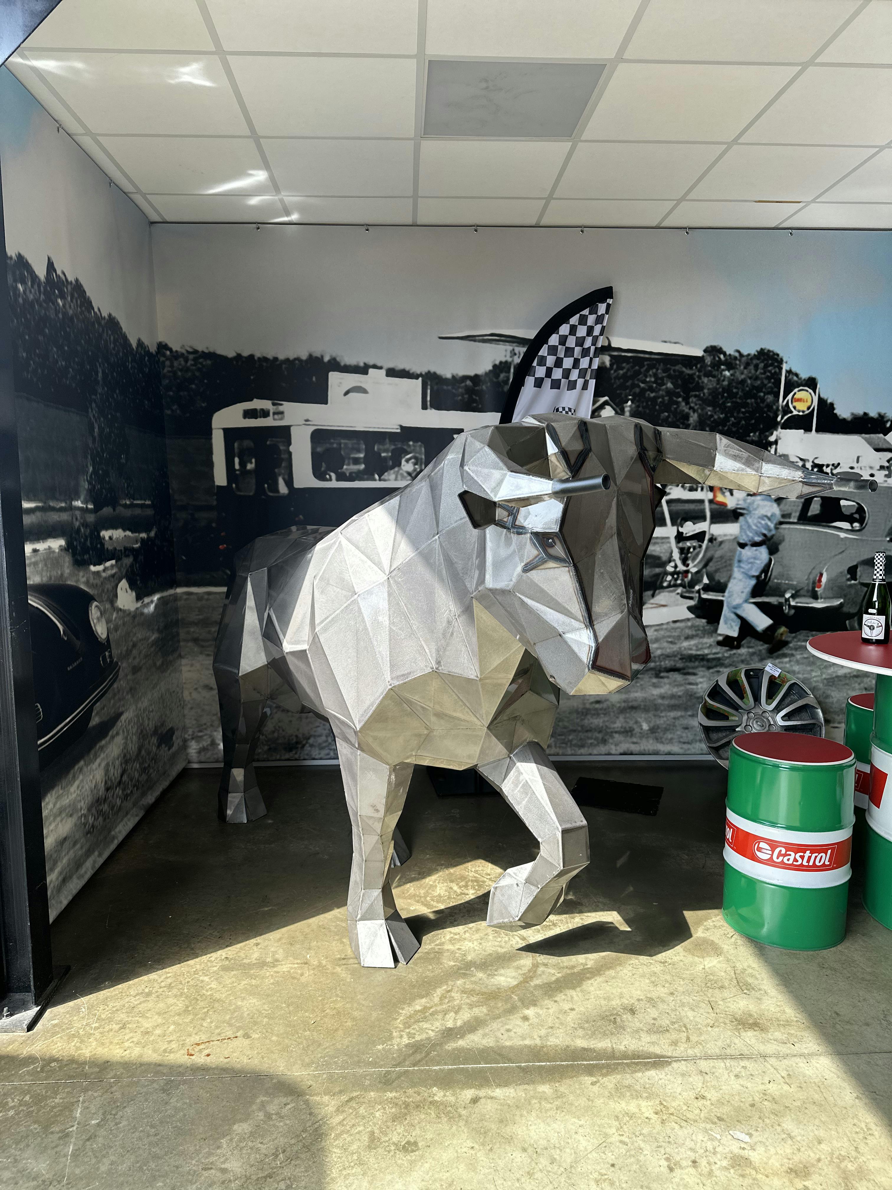 Nous contacterUn taureau fabriqué, plié et soudé à la main mesurant 1m60 de haut sur 3m20 de long. Plus de 120 kg . Une pièce limitée à 5 exemplaires, accompagné de son certificat d'authenticité, un book de sa fabrication, entièrement réalisé à la main et par un artisan Français . De nombreuses réalisations sont disponibles sur demande et sur commande uniquement par cet artiste. Une décoration de boutique, de showroom, d'un espace piscine, peut être peint ou en effet miroir polis . Cette pièce est en stock à l'essence de l'automobile et en exclusivité . Panthère, Rhinoceros, Cheval cabré son aussi disponible. Plus de photos sur demande