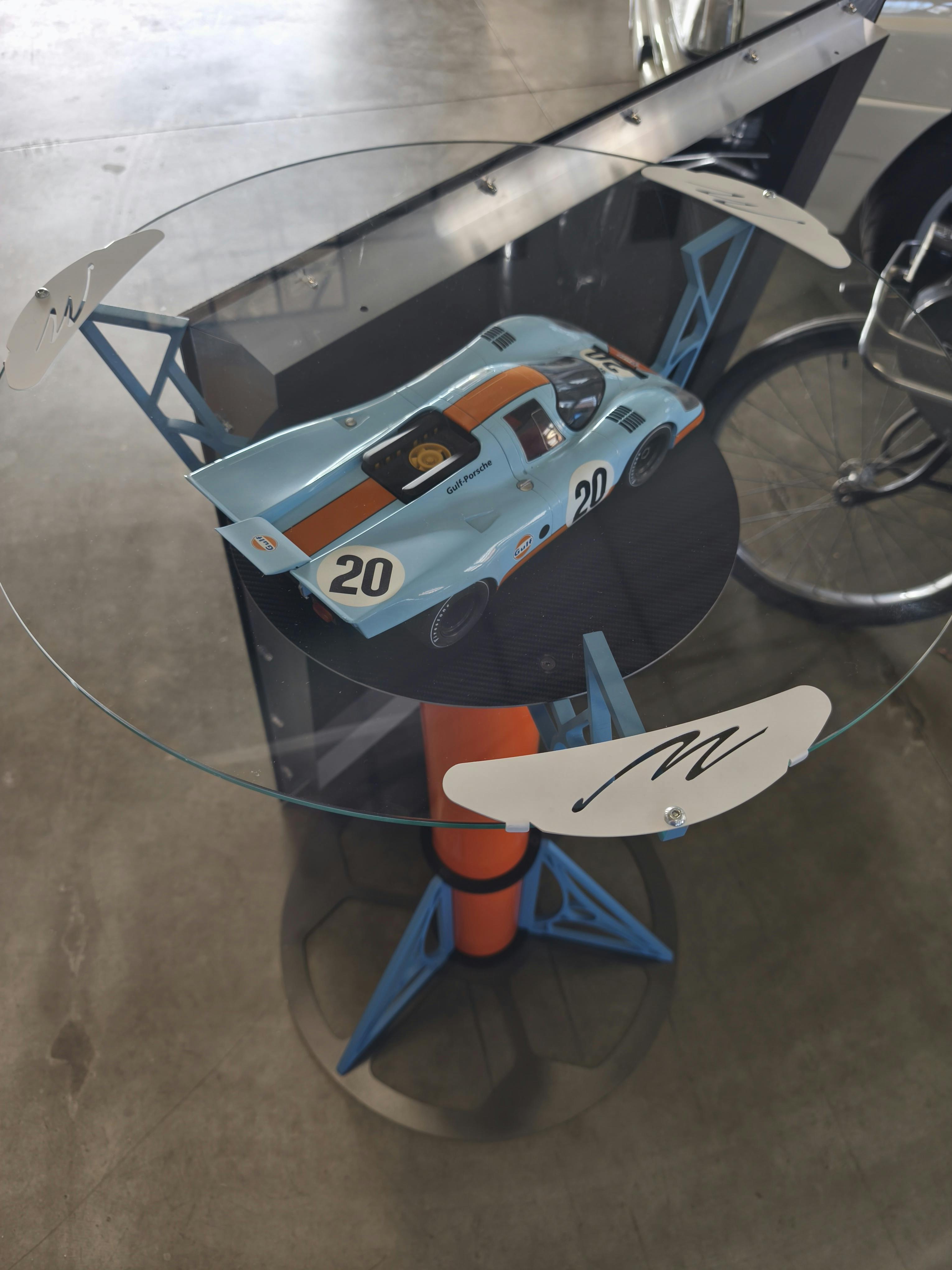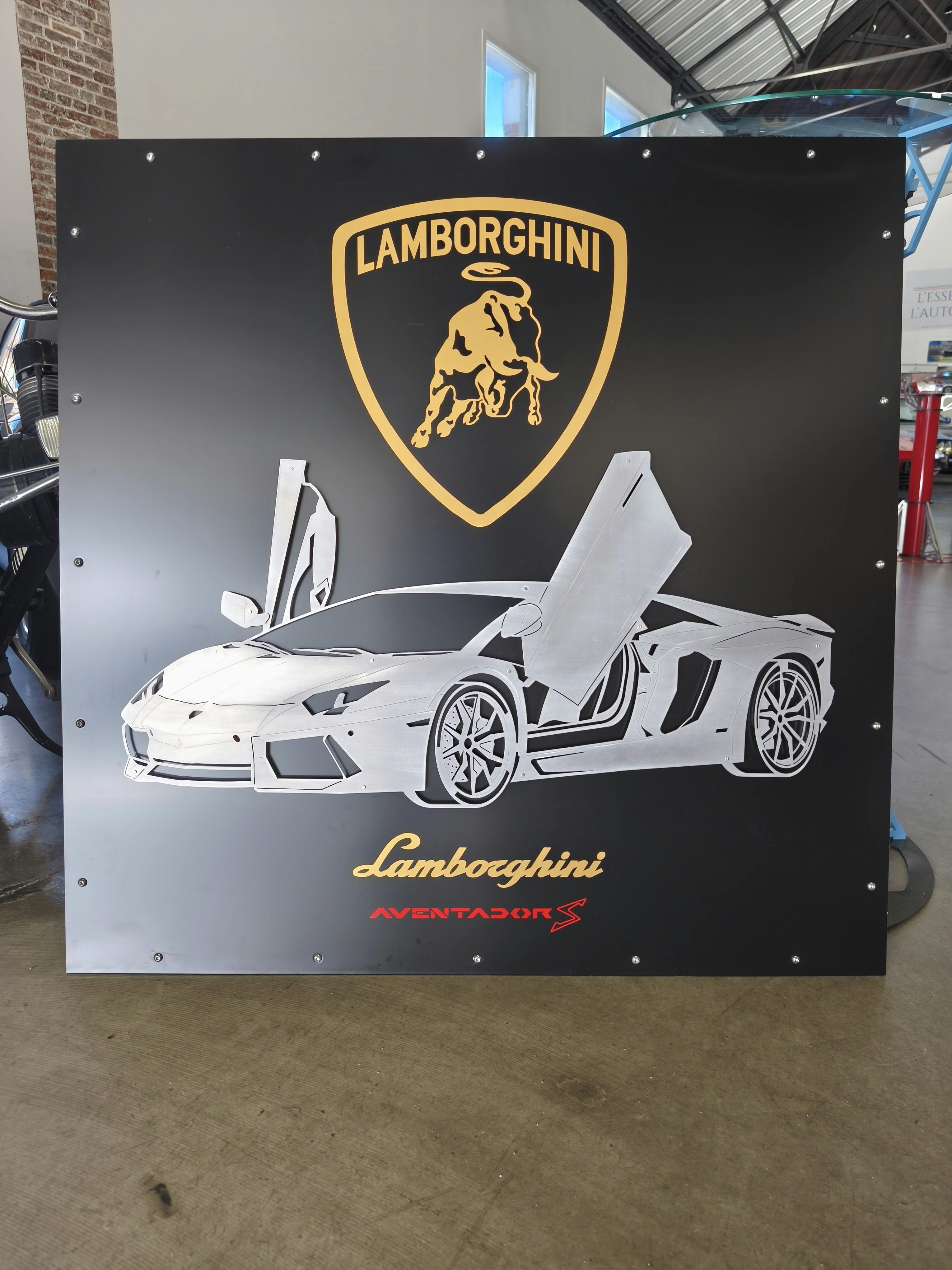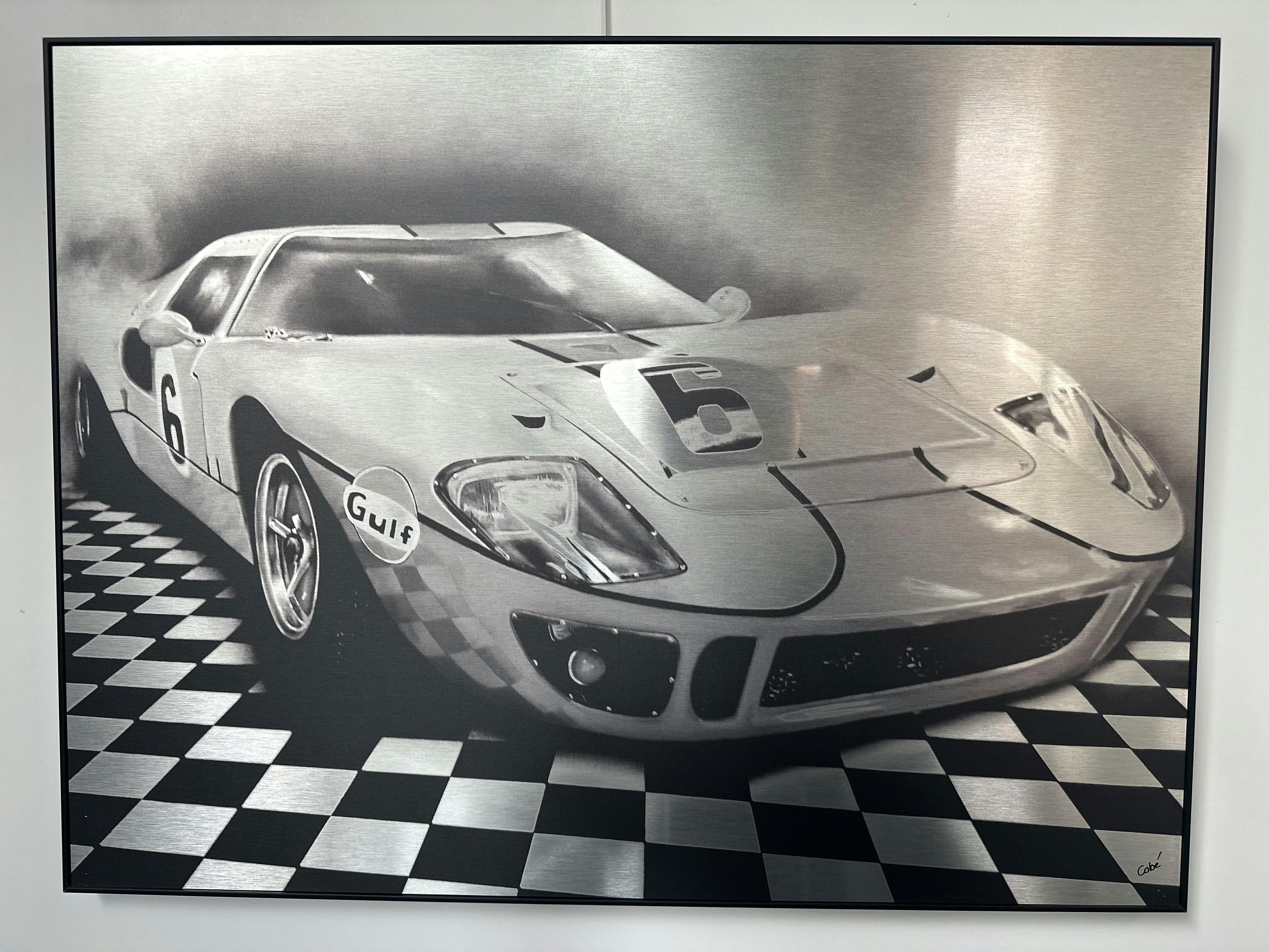 CommanderMatériaux aluminium et verre faite à la main par artisan et créateur français Visuel présenté Porsche entièrement personnalisable à la marque et dimension de votre choix dimensions présenté 130X 90 cm Réalisé par un Artisan et créateur Français.