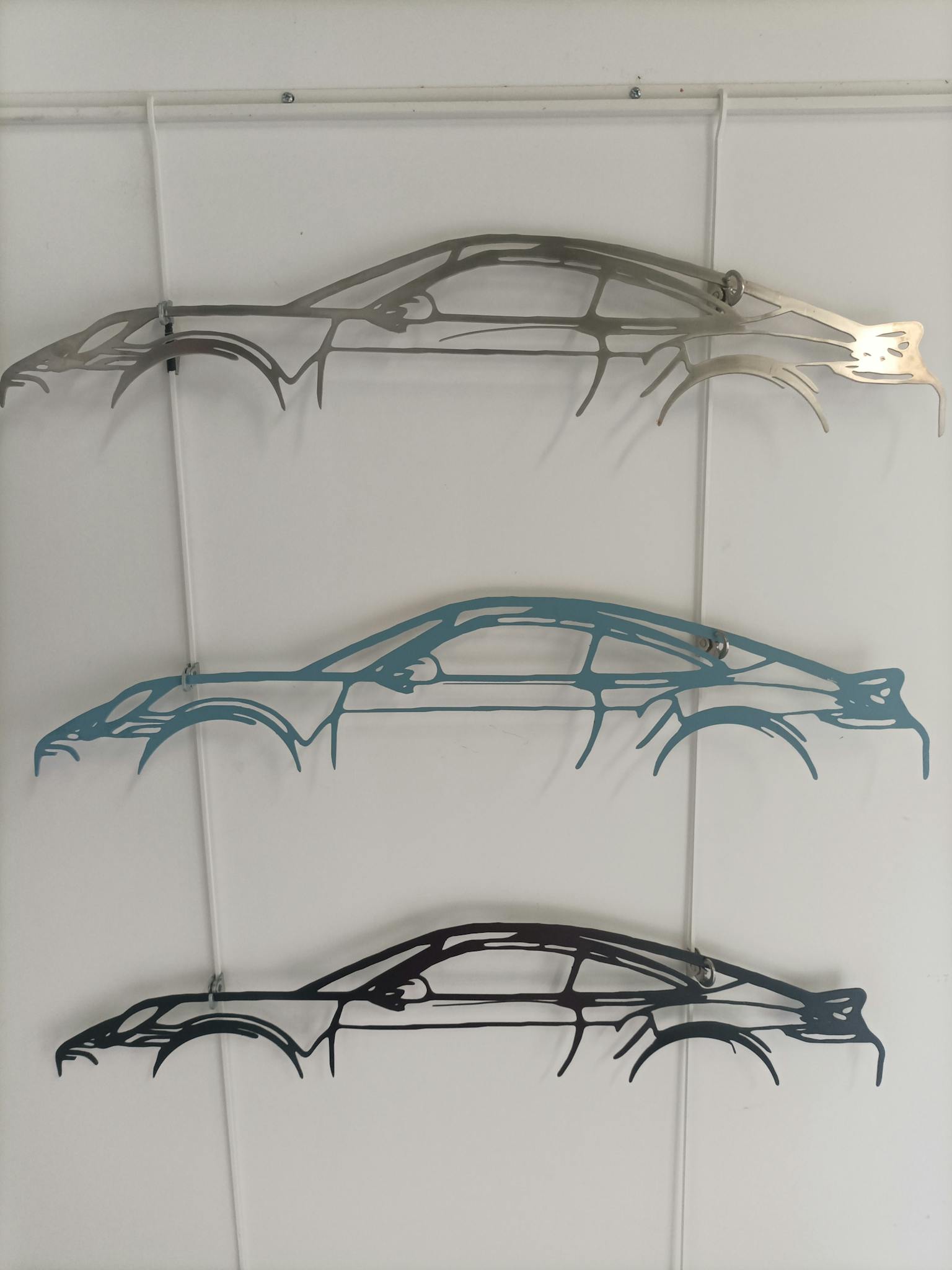 CommanderUne représentation original de la Porsche 911 en découpe laser. En acier traité en peint, celle ci à été réalisé par une société Française leader dans la création et réalisation du sur mesure dans l'industrie métallurgique. Une œuvre, un objet de décoration incontournable . Vous souhaitez une couleur particulière .....On vous écoute . Dimension L 69/l 13